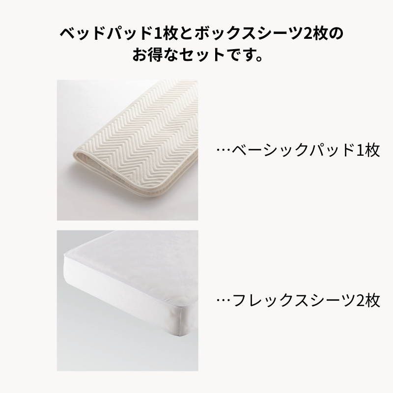 *こちらはベーシックパッド1点とフレックスシーツ2点が入ったお得なセットです*