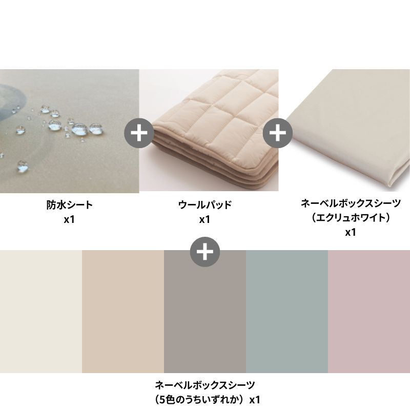 *こちらは防水シート1点とウールパッド1点、ネーベルボックスシーツ2点が入ったお得なセットです*