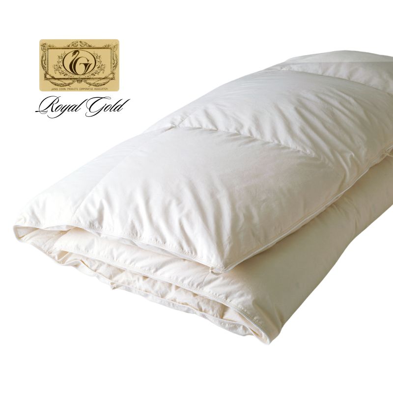 【家庭洗濯不可:製品の洗濯表示をご確認ください】 【製品仕様】 ・表布地:綿100%サテン(抗菌・防臭加工) ・中わた:ポーランド産ホワイトグースダウン93%・スモールフェザー7%(抗菌・防臭加工) ・ダウングレード:ロイヤルゴールドラベル