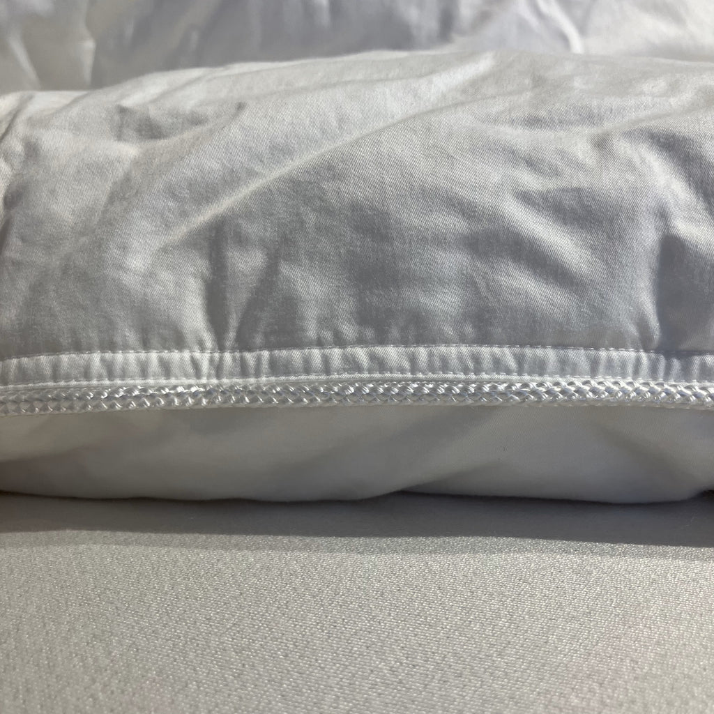 側地は世界三大綿と呼ばれるエジプト超長綿GIZA87を使用し、シルクのような手ざわりでしっとりしなやかです。最高級羽毛の暖かさをそのままに、軽やかに体に寄り添うダウンコンフォーターです。