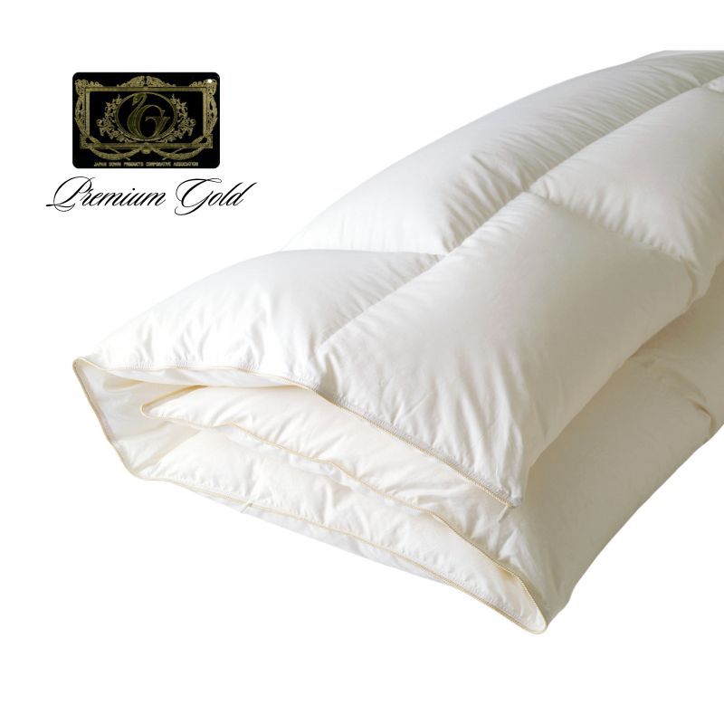 【家庭洗濯不可:製品の洗濯表示をご確認ください】 【製品仕様】 ・表布地:綿100%サテン(抗菌・防臭加工) ・中わた:ポーランドホワイトマザーグースダウン95%・スモールフェザー5%(抗菌・防臭加工) ・ダウングレード:プレミアムゴールドラベル