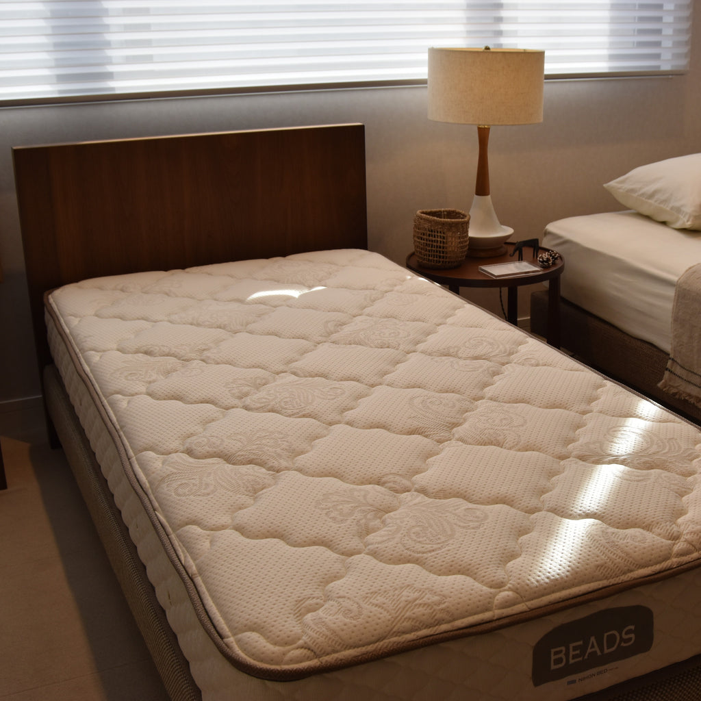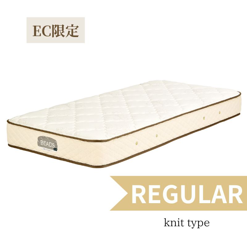 安定感のある太めのコイルを使用したビーズポケットマットレスは、ほどよい固さでしっかりと体を支え、表地のニット生地はもちもちとした優しい感触で心地良い眠りをサポートします。