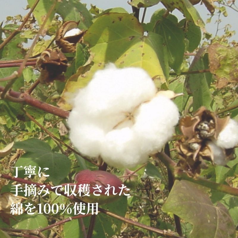 この綿花は繊維が傷まないように昔ながらの手摘みで丁寧に収穫されています。