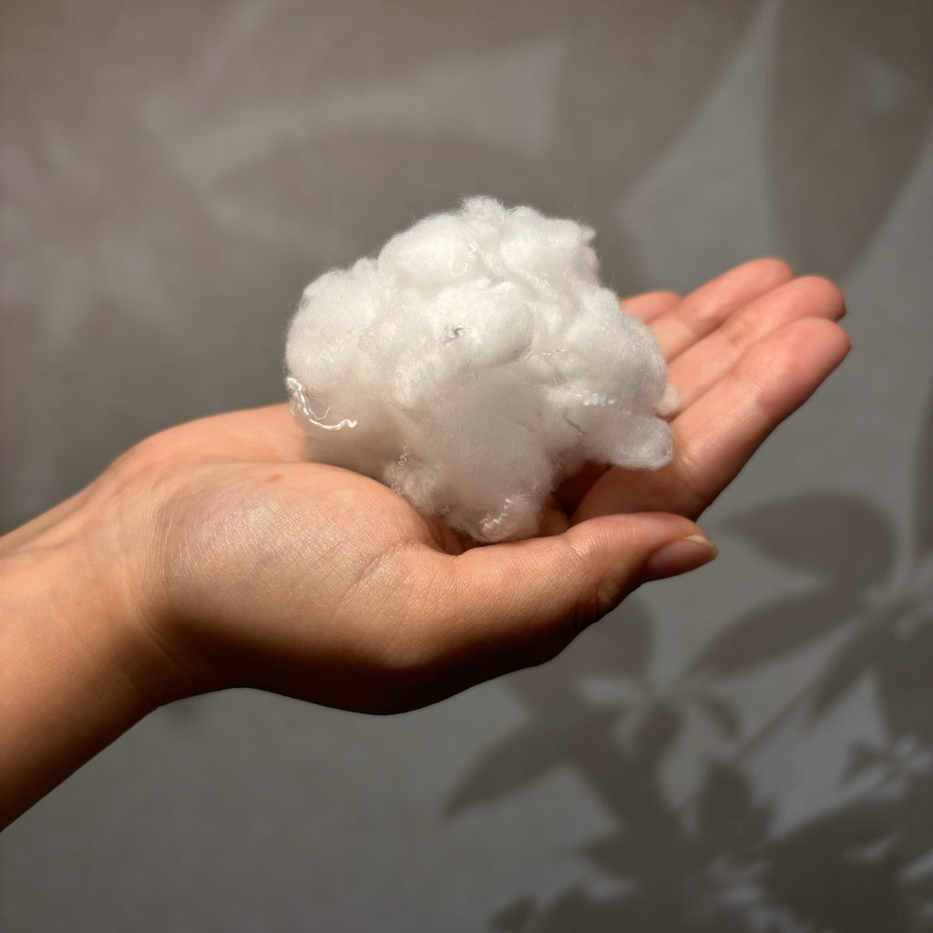 B面には、ポリエステルわた(ダクロンメモリーファイバーフィル)が使用されており、低反発のようでありながら柔らかな感触が特徴です。