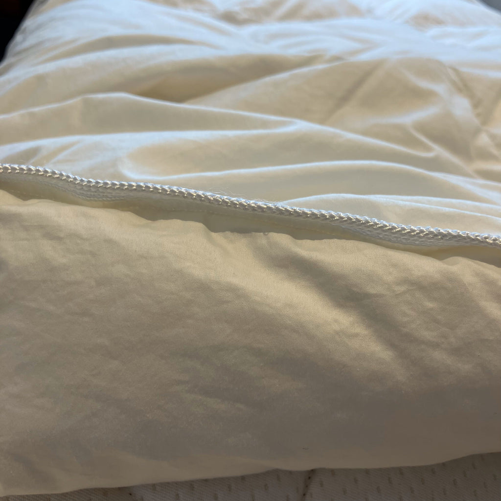 側地は世界三大綿と呼ばれるエジプト超長綿GIZA87を使用し、シルクのような手ざわりでしっとりしなやかです。最高級羽毛の暖かさをそのままに、軽やかに体に寄り添うダウンコンフォーターです。